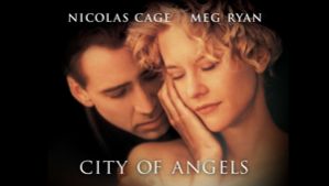 עיר של מלאכים - ניקולס קייג' דרמה. הגרסה האמריקנית ל''מלאכים בשמי ברלין''. מלאך בשמי לוס אנג'לס מתאהב במנתחת ונאלץ לבחור בין חובתו השמיימית לבין החיים הגשמיים. עם ניקולס קייג', מג ראיין, בימוי בראד סילברלינג (ארה''ב, 1998). (שח)