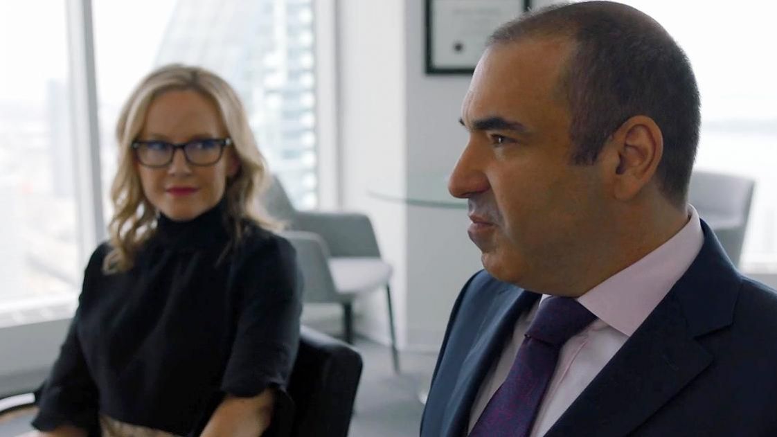 Suits 8 - פרק 8 הרווי עוזר לסמנת'ה ליישב סכסוך ישן. לואי ניצב בפני מכשול בדרכו לאבהות.