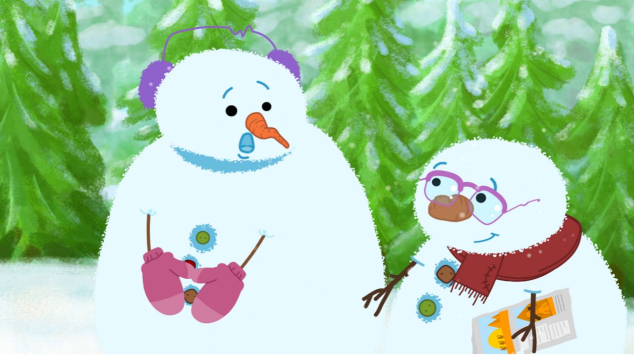 שלגונים - פרק 14 שני אנשי שלג שנשארים לבד, משחקים בניהם משחק ניחוש. הצופים מוזמנים לנחש יחד איתם איזו חיה הם יבנו בשלג. כ' עב'. מדובב. ש.ח.